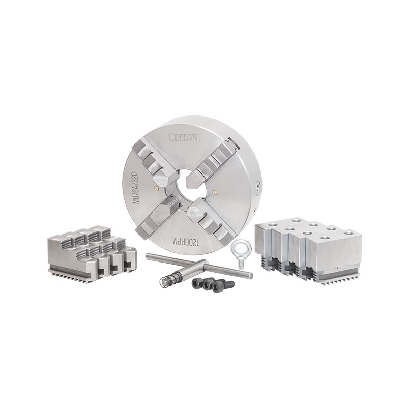 A GUIDA SINGOLA. GRIFFE INTEGRALI, SERRAGGIO CONCENTRICO, DOTATO DI: 1 SERIE COMPOSTA DA 4 GRIFFE PER INTERNI, 1 SERIE COMPOSTA DA 4 GRIFFE PER ESTERNI E 1 SERIE COMPOSTA DA 4 GRIFFE TENERE E CHIAVE DI SERRAGGIO.